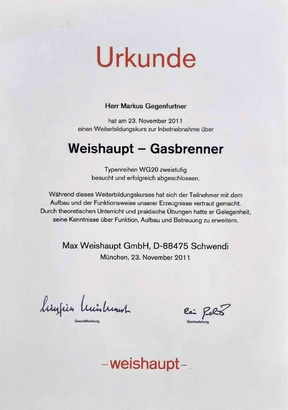 MRG Haustechnik e.K. wurde 2021 von mir, Markus Gegenfurtner, gegründet. Meinen Gesellenbrief erhielt ich 2010. Nach 10 Jahren Berufserfahrung als Geselle, erlangte ich 2020 nach erfolgreich absolvierter Meisterprüfung den Titel als Meister im Installateur- und Heizungsbauhandwerk.